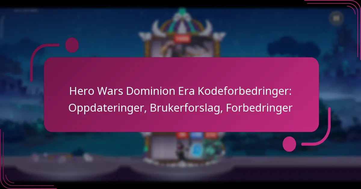 Hero Wars Dominion Era Kodeforbedringer: Oppdateringer, Brukerforslag, Forbedringer